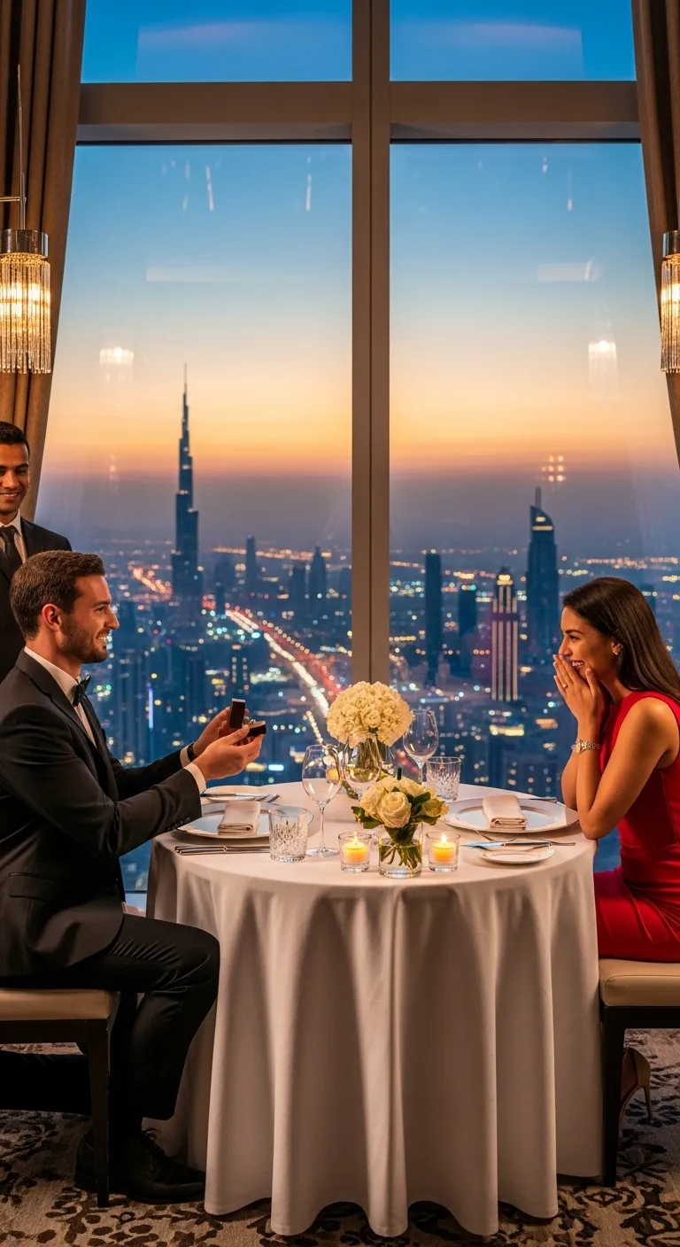 The best time romantic restaurants UAE is at sunset or dusk. Arriving early lets couples enjoy the soft lighting, skyline views, and romantic ambience before dinner begins.