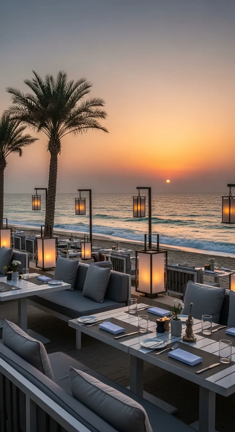 Shimmers offers beachfront dining with Arabian Gulf views. Couples love the cozy seating, soft lanterns, and fresh Mediterranean food. A laid-back yet romantic restaurant in Dubai, perfect for a relaxing evening by the sea.
